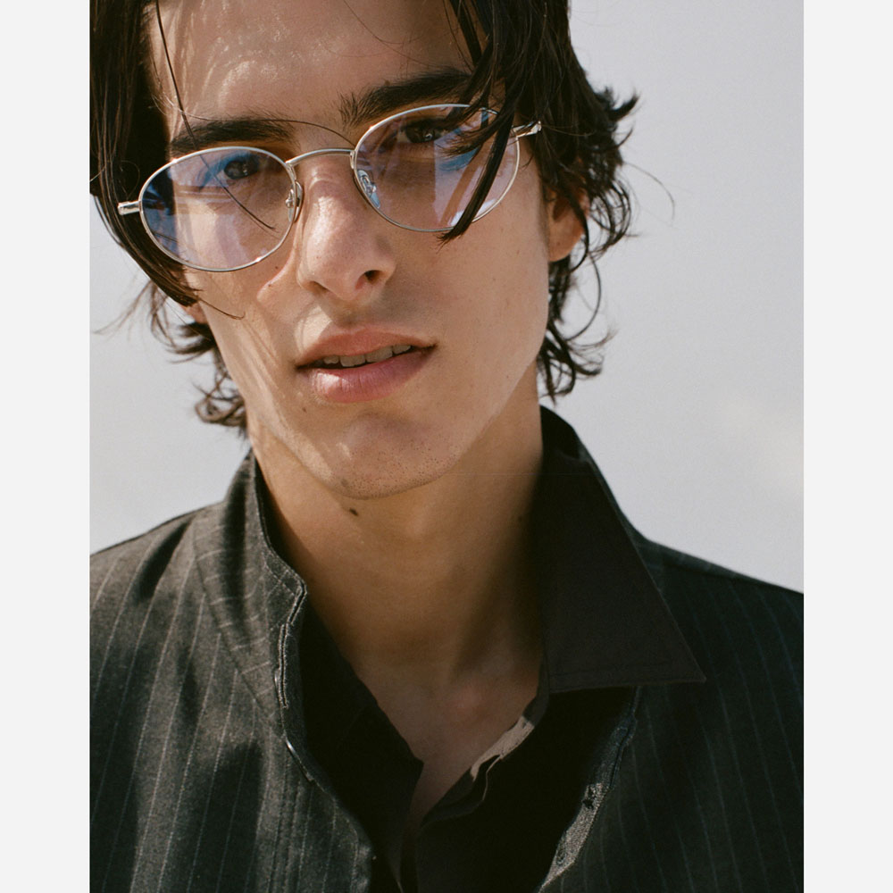 チタン製ノーズパッドと、ブランドのシグネチャーであるアセテート製テンプルチップを採用。ミニマルなデザインの中に、程よいエッジと個性を感じさせる一本です。