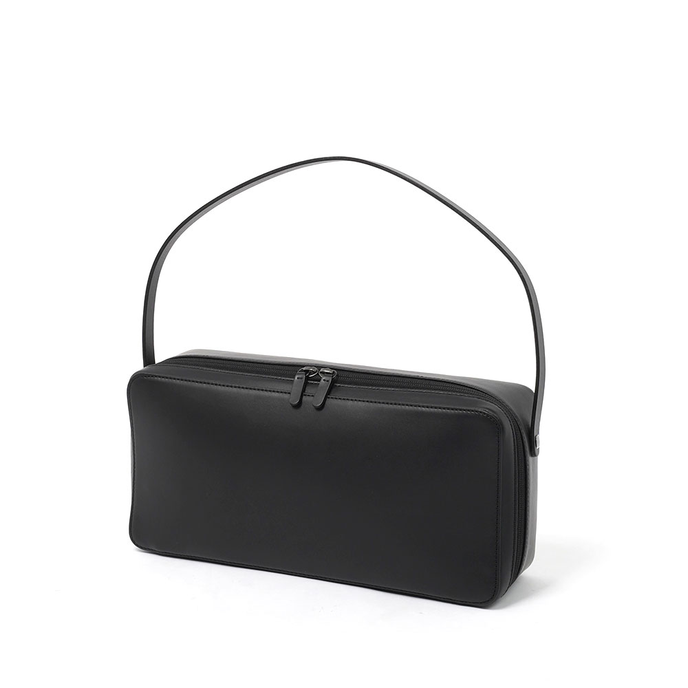 ヨーロッパ原皮の上質なカウレザーを使用し、職人の手作業によって丁寧に仕立てられたレザーバッグです。横長のシルエットが特徴で、繊細なディテールと洗練された素材感が際立つ、上品な佇まいに仕上げています。