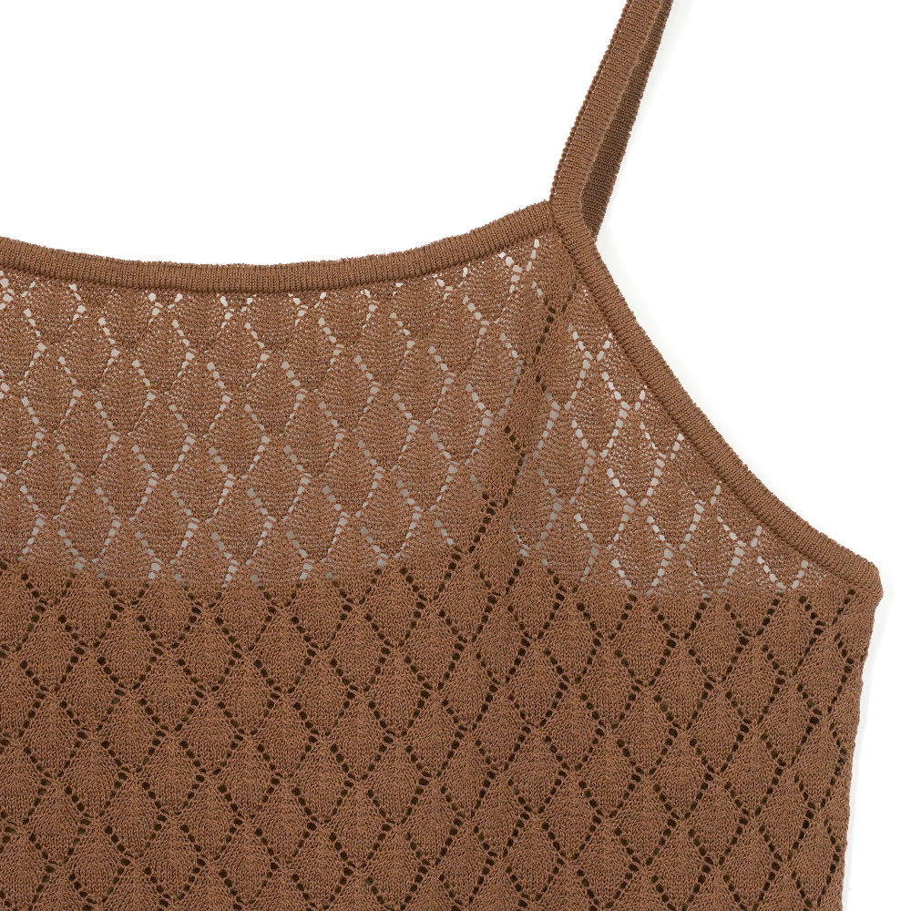 ダイヤ柄の透かし模様がレトロな雰囲気のニットキャミソール。