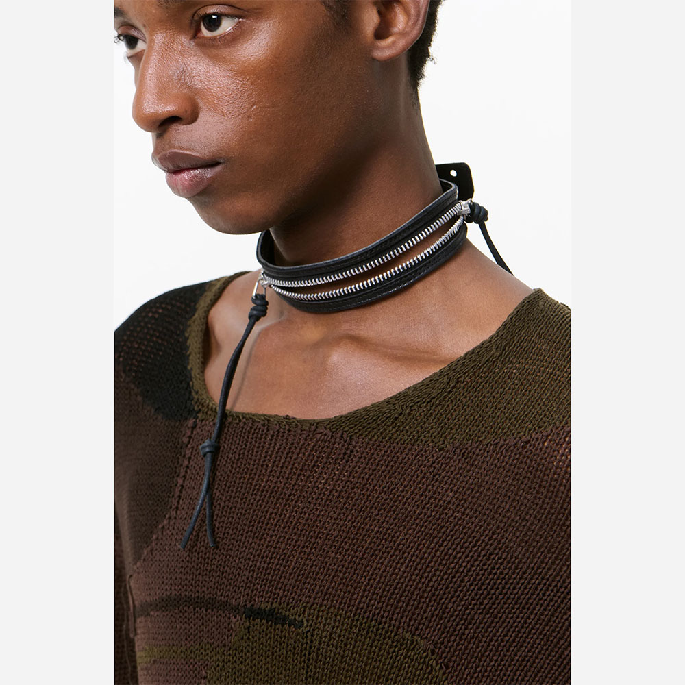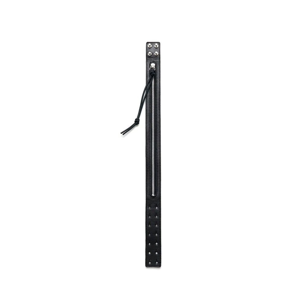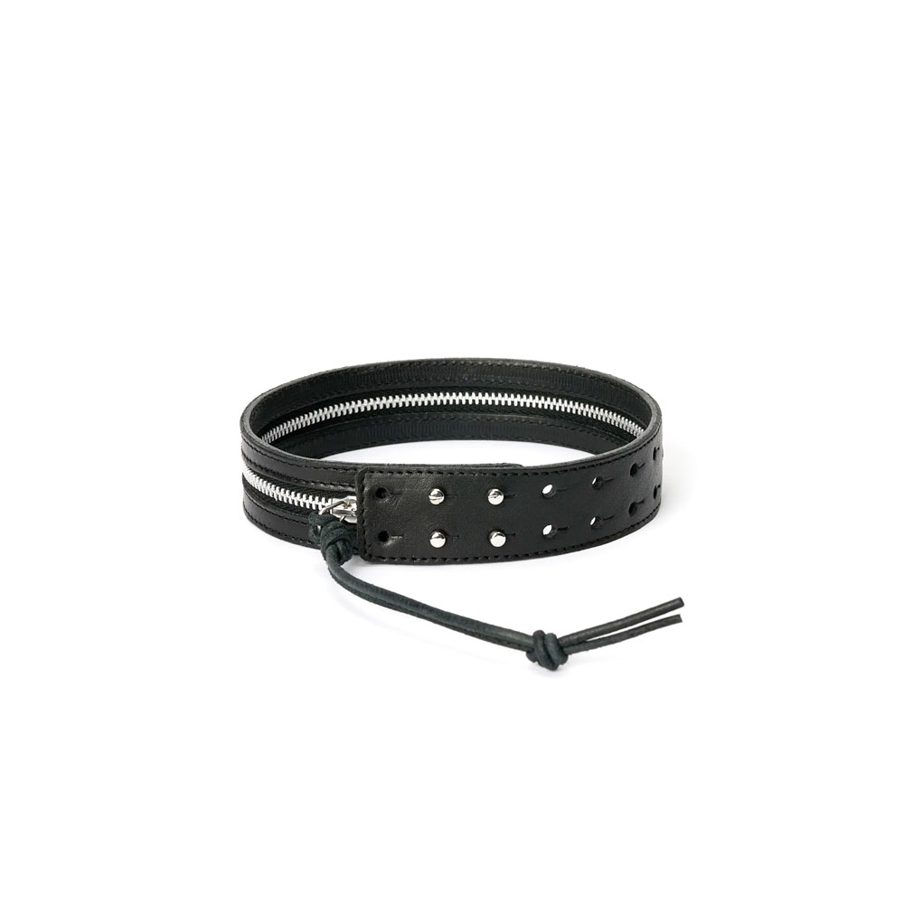 柔軟なブラックカウレザーを使用したジップ付きチョーカー。