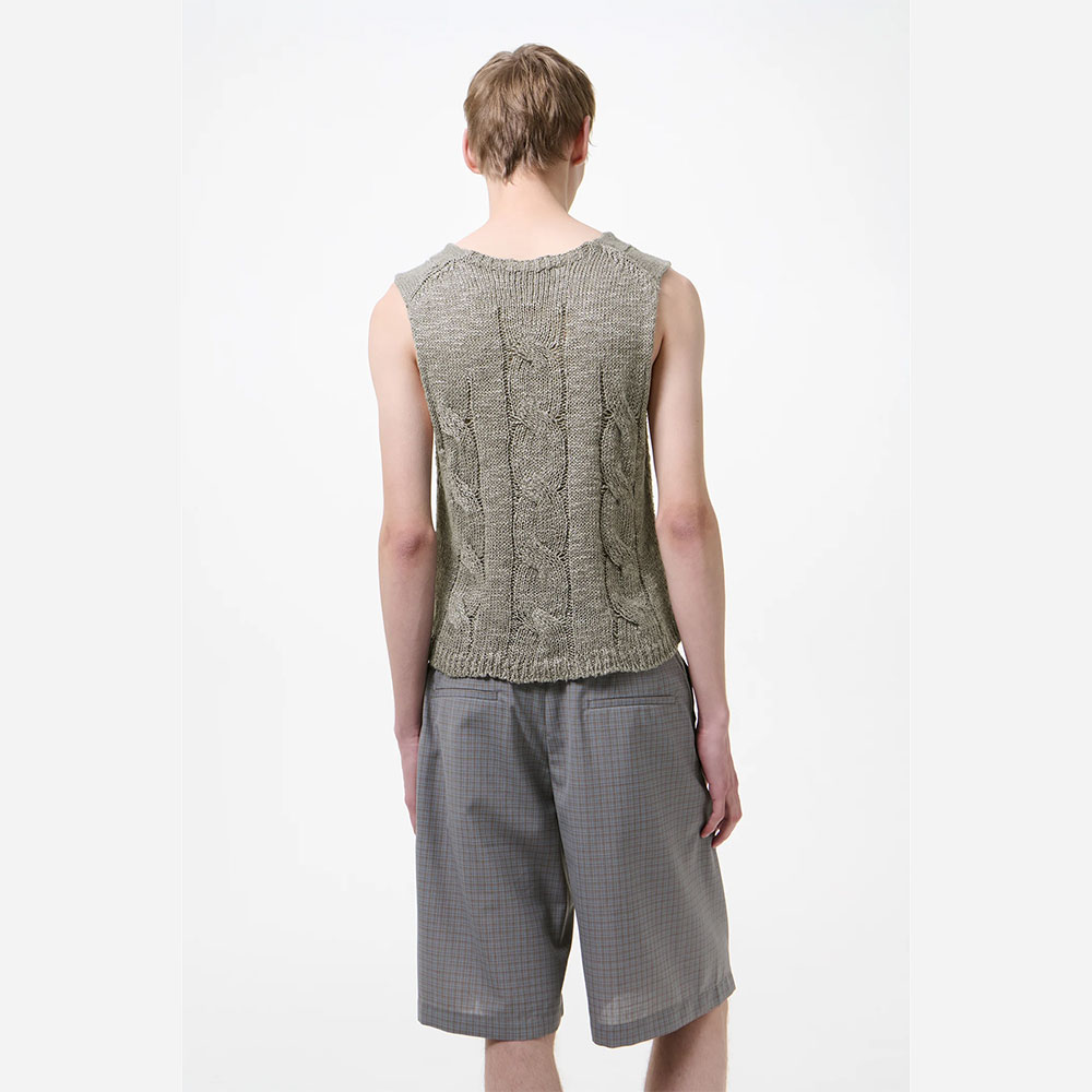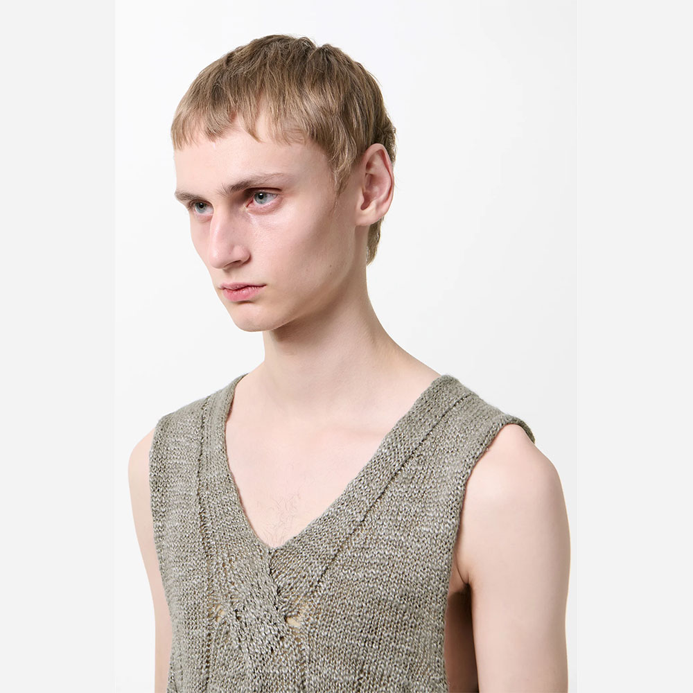 上質なヘンプ×シルク糸を使用し、奥行きのある表情に仕上げたニットベスト。