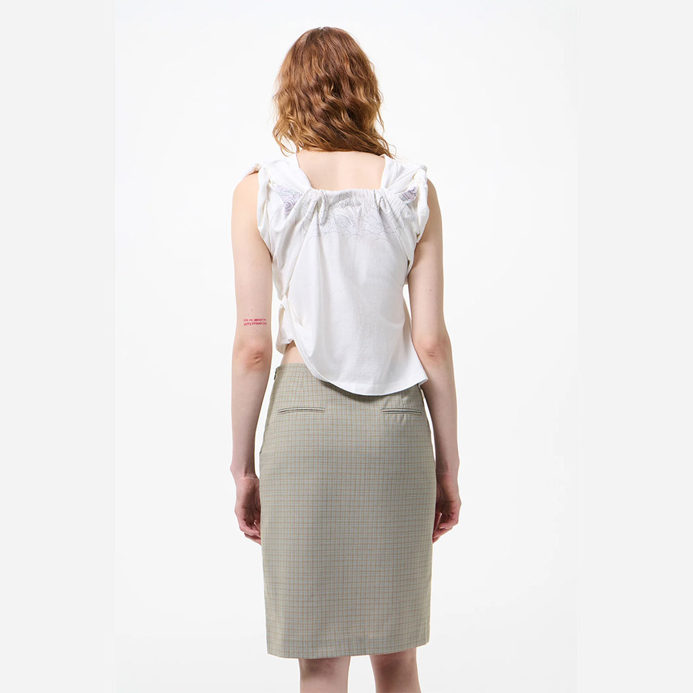 ゆったりとしたシルエットに、首元後ろのギャザーが生み出す独特なツイスト構造が特徴です。