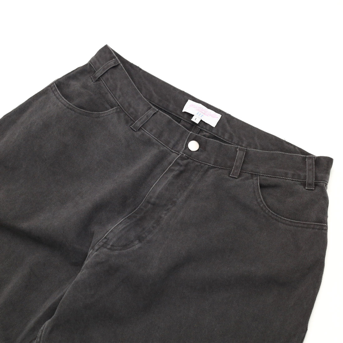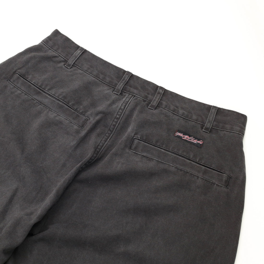 柔らかく薄手の生地で、春夏時期にも快適にご着用いただけます。ワイドなテーパードシルエットで、腰回りからバックスタイルまで、すっきりとした仕上がりの一本。ポケット上部のブランドタグもさりげないアクセントに。