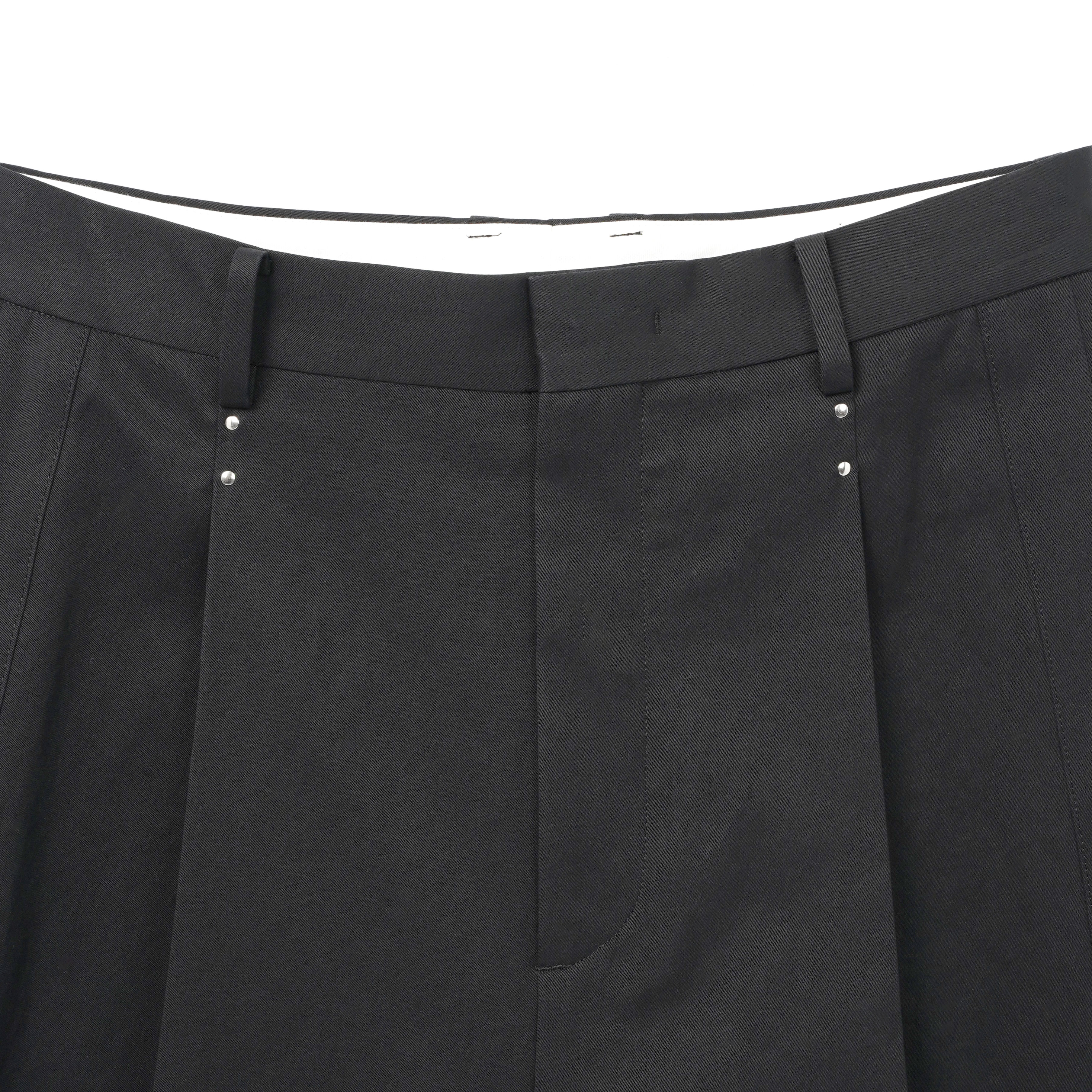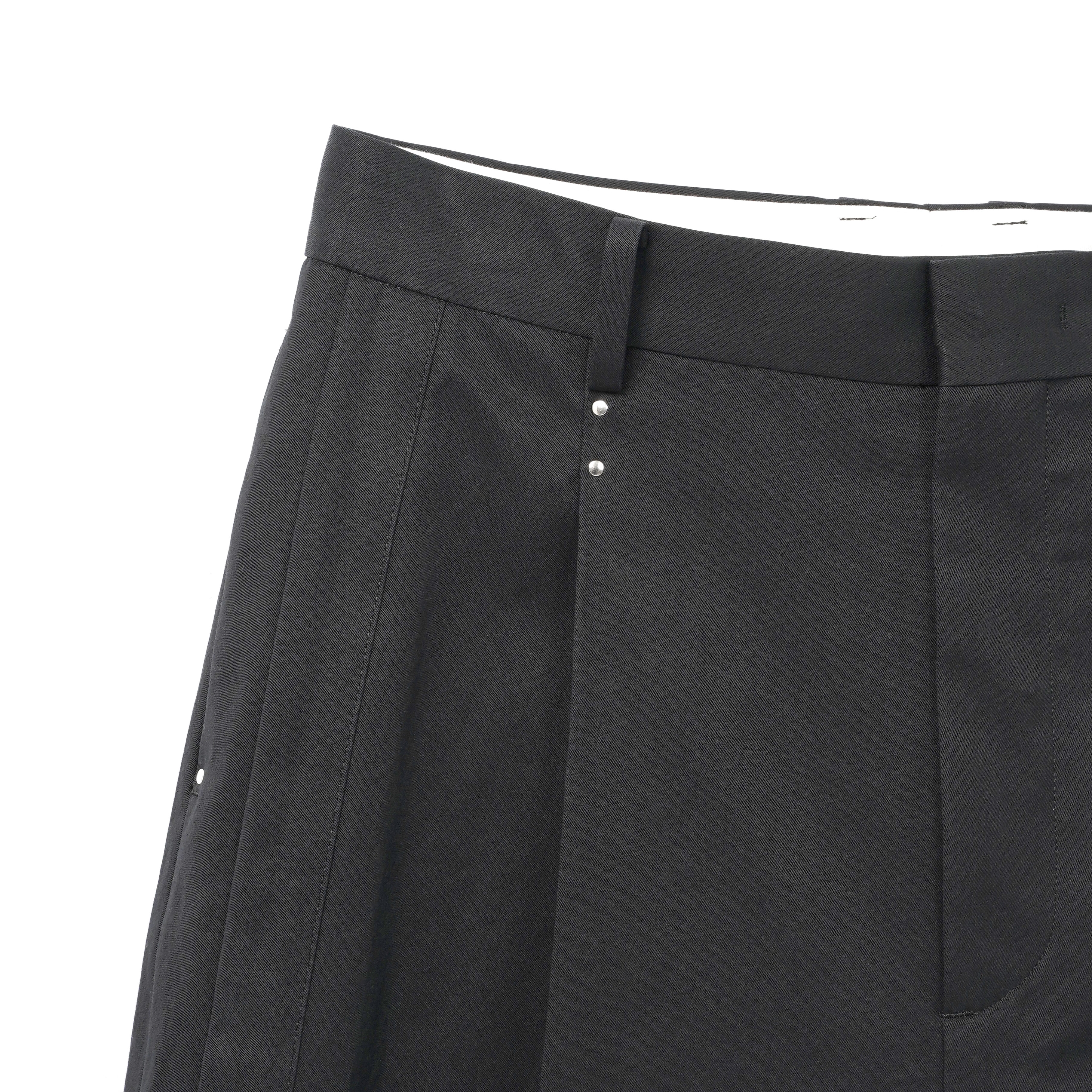 両脇のタキシードディテール(側章)がクラシックさを演出するワンタックテーラードショーツ。タックやポケット⼝のカシメがさりげないポイントに。