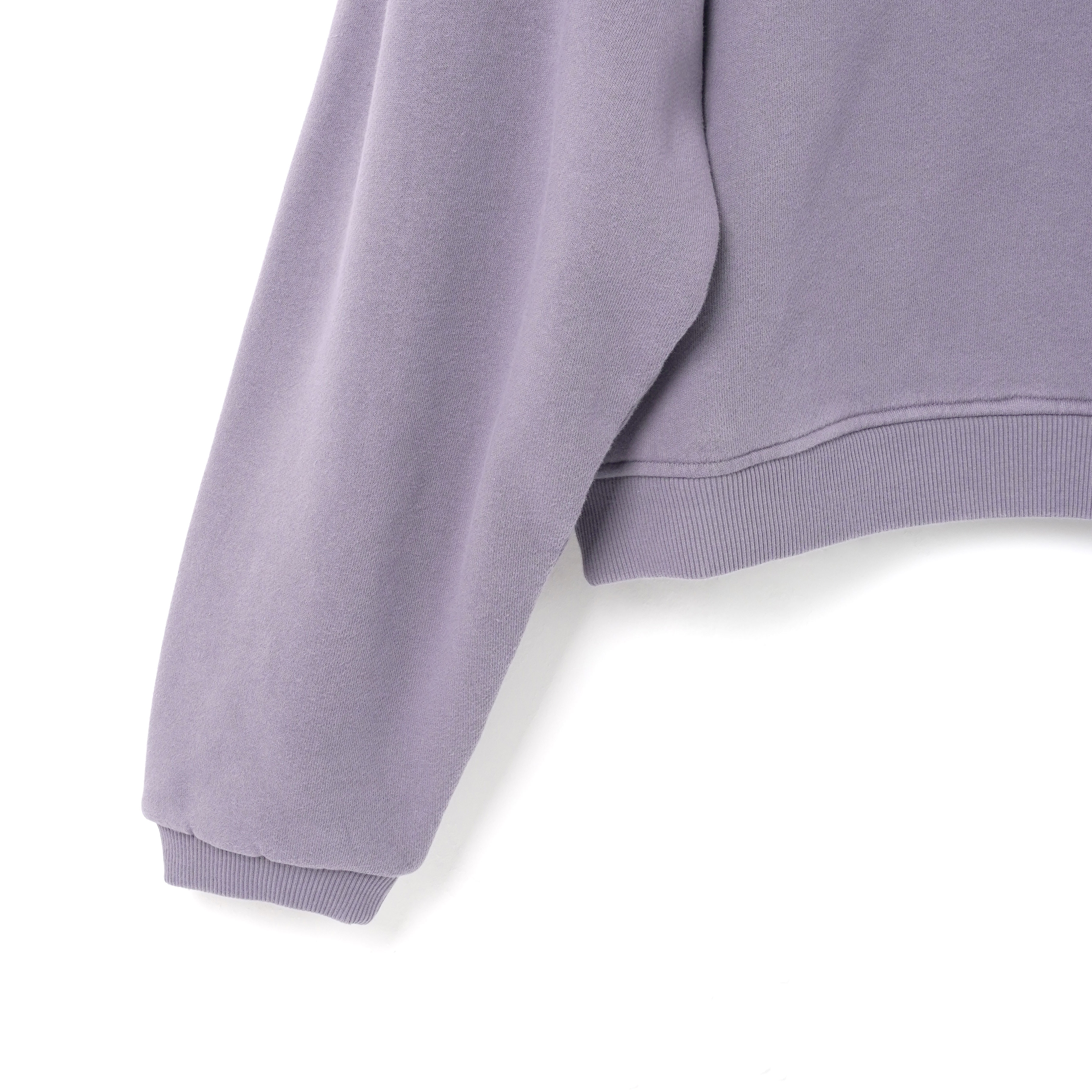 フェード感のあるカラーリングが魅力のクルーネックスウェット。もっちりとした質感の中厚コットン生地を使用し、裏地は裏起毛仕様に仕上げています。短めの着丈と丸みのあるボックスシルエットが特徴。胸元のロゴパッチもさりげないアクセントに。
