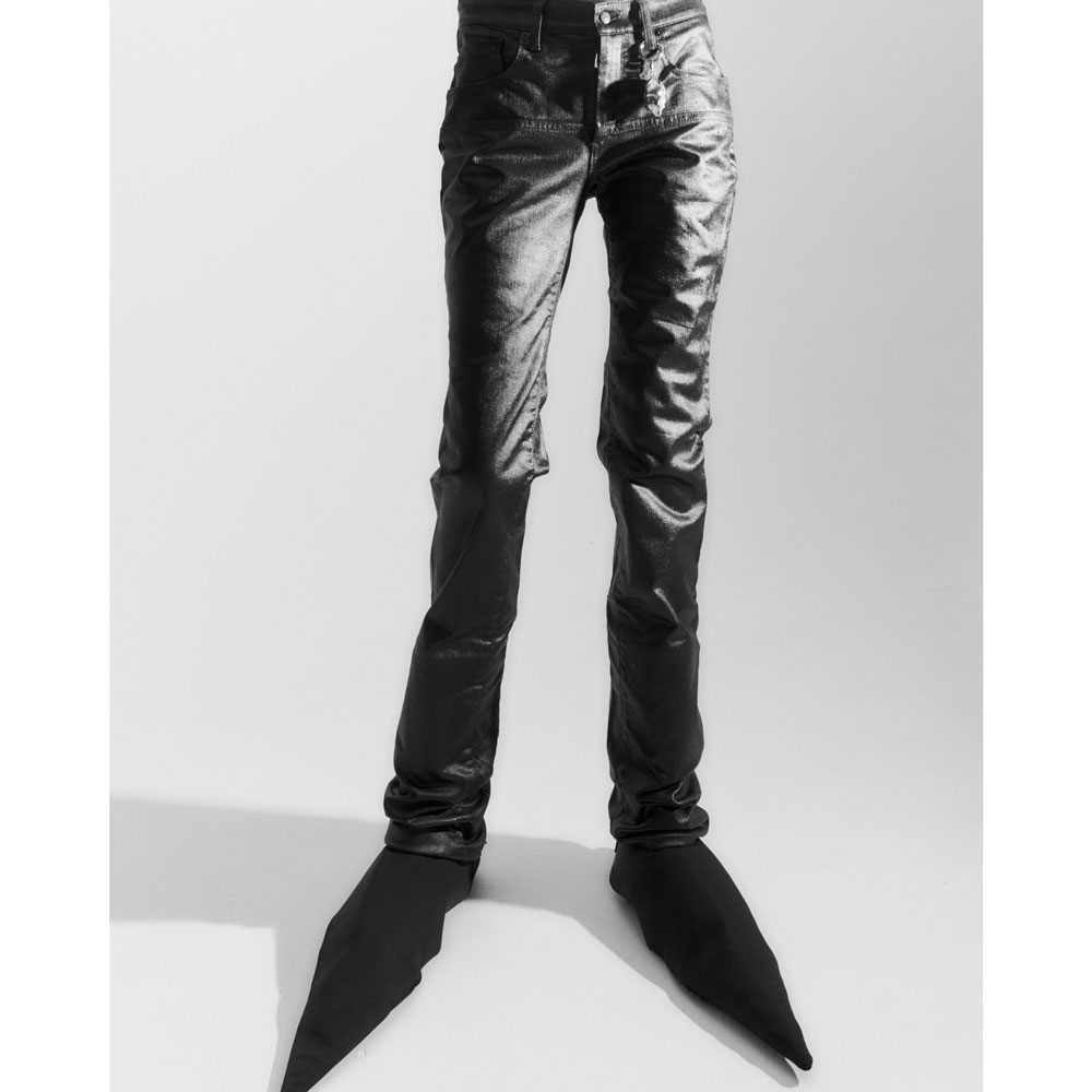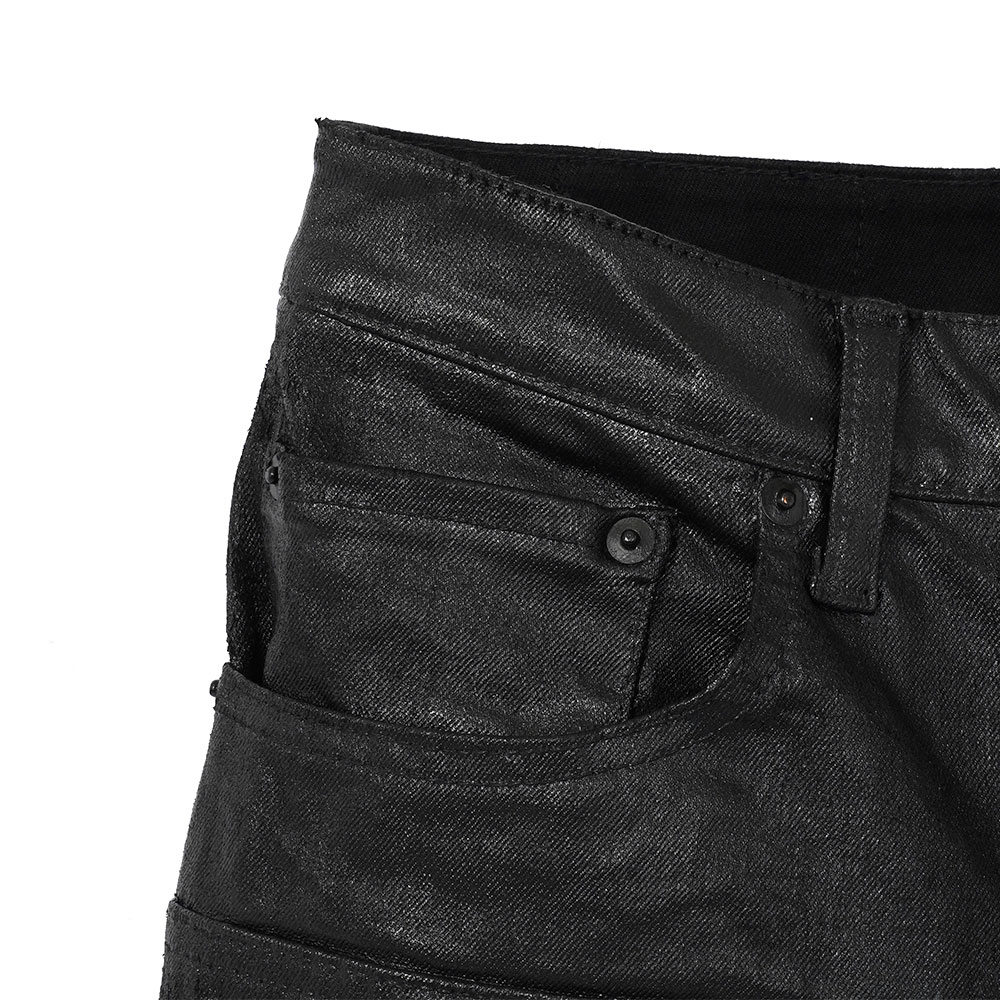 岡山のデニム工場にて生産され、素材には伸縮性の高いモンスターストレッチデニムを使用。パンクな雰囲気漂うスキニーシルエットが特徴です。