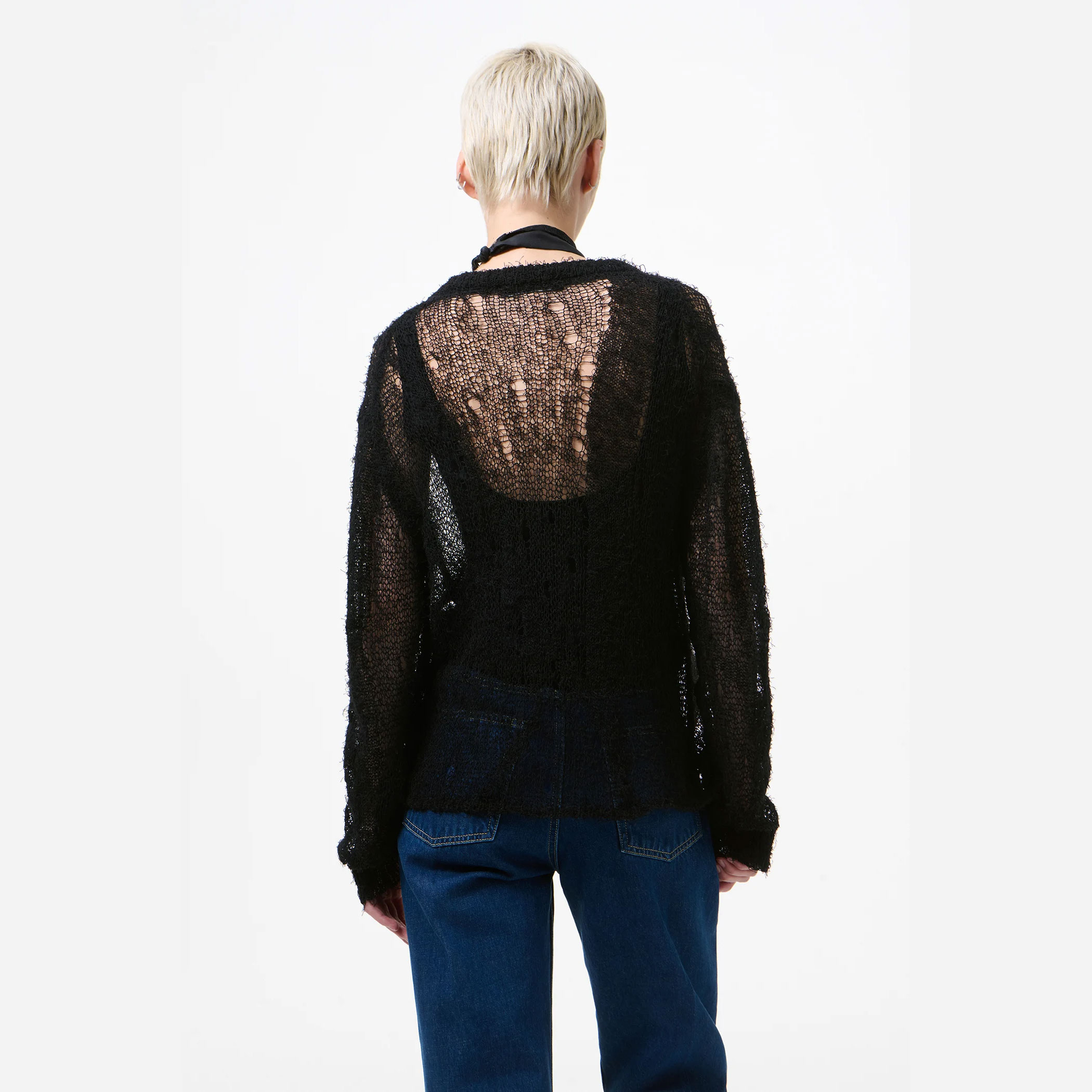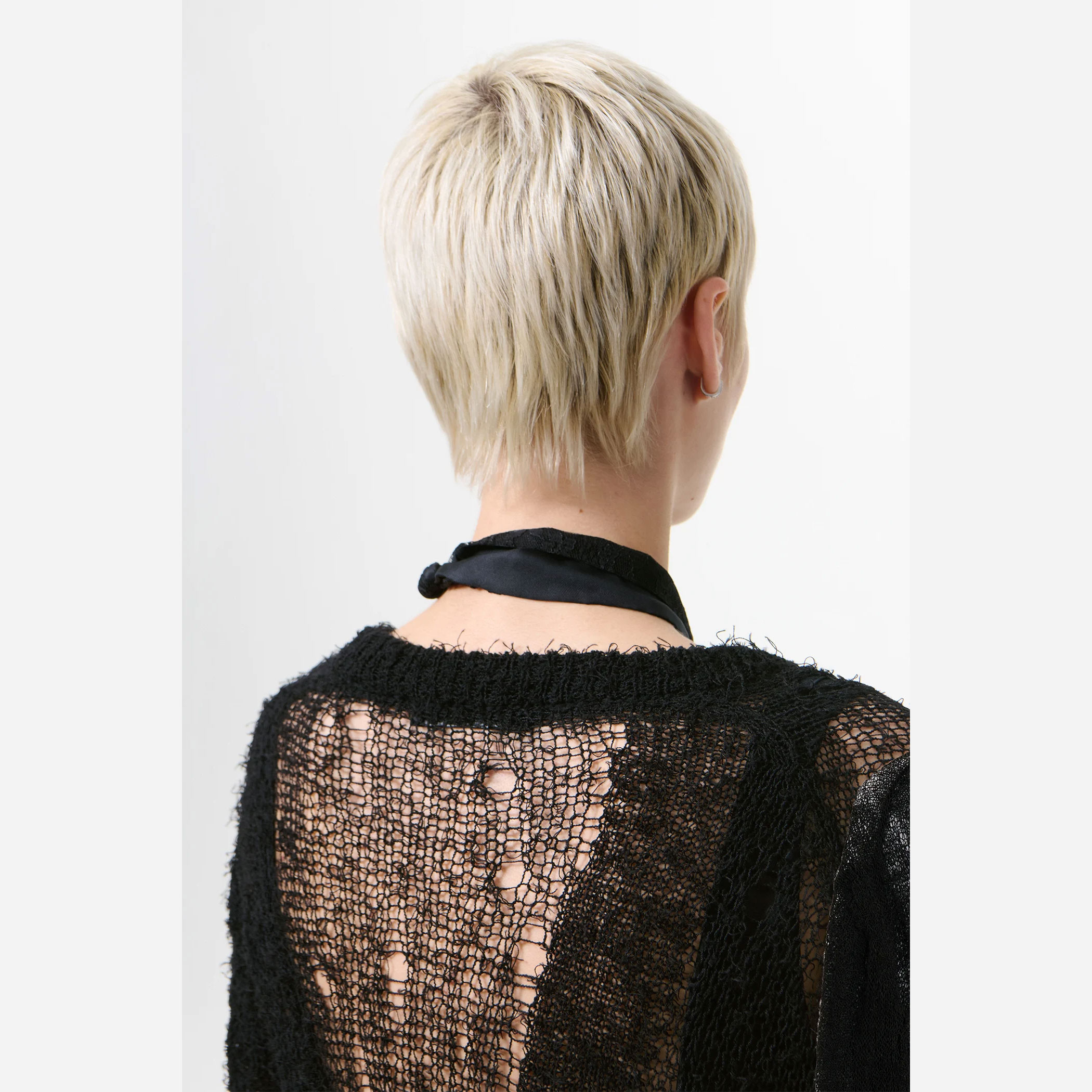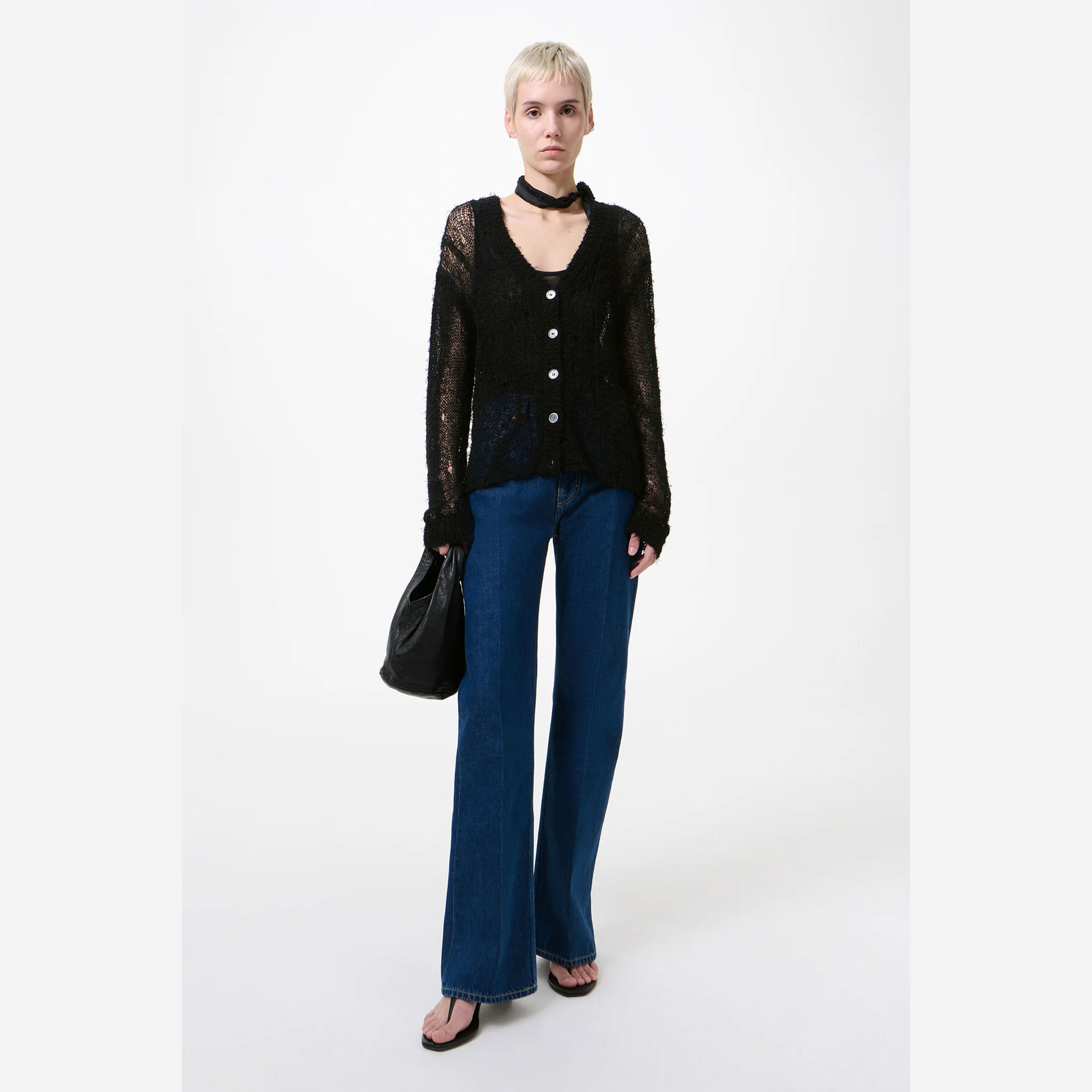 ACADEMY CARDIGAN BLACK RAGGED OPEN LINEN