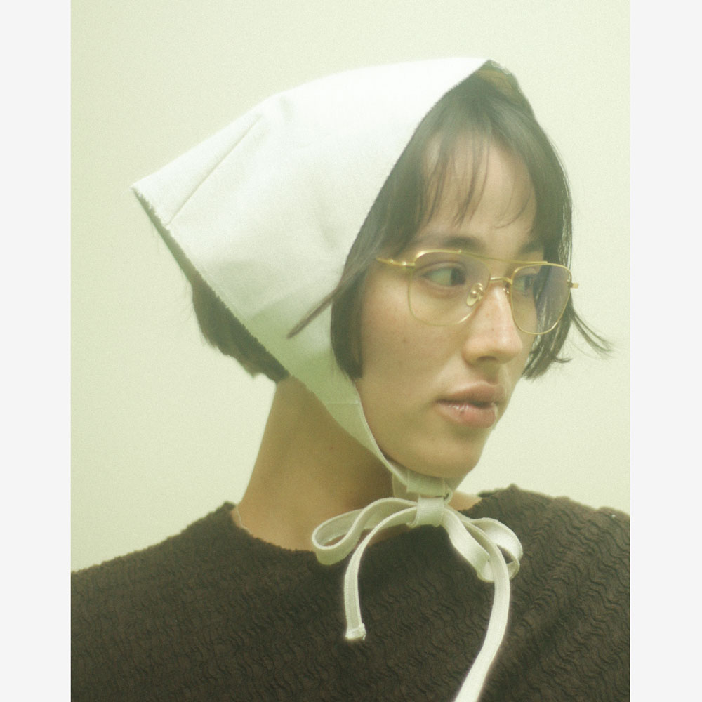 本アイテムには、デニムの残反生地を使用。生産過程で生まれる生地を活かすことで、一点ごとに異なる風合いや表情を楽しめるのも魅力のひとつです。カジュアルな素材でありながら、顔まわりにやわらかなニュアンスを添え、スタイリングに奥行きをもたらします。