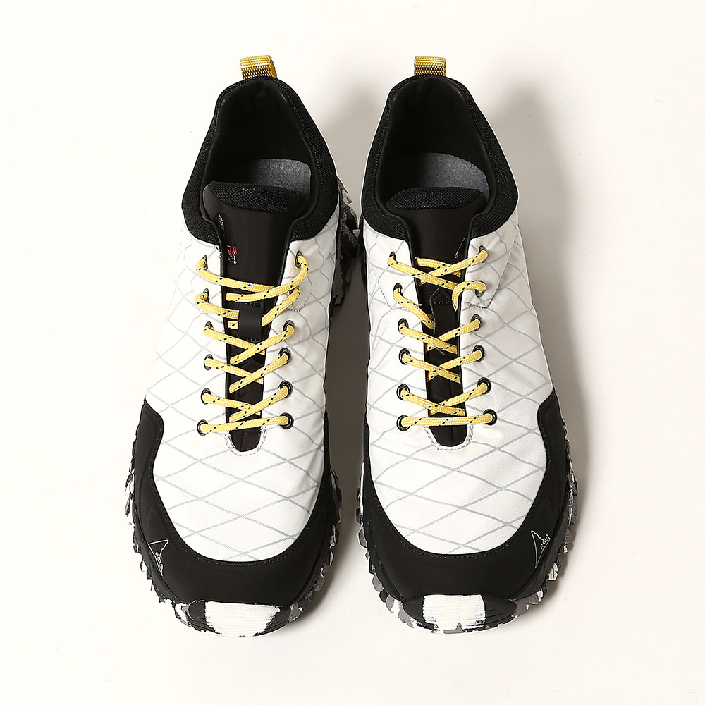都会的かつモードな雰囲気漂うトレッキングシューズです。ソールにはビブラムソールを採用し、歩行時の足への負担を最小限に軽減してくれます。アッパーには耐久性のあるリップストップナイロンを使用しており、また多少の雨風なら凌ぐことが出来ます。BRAIN DEADとの本コラボレーションは彼らのセンスとROAの独自の美学と最新のテクノロジーが融合した至高の1足に仕上がっております。